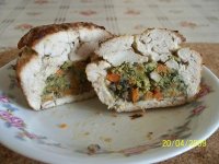 Bałam się tylko żeby nie przedobrzyć z przyprawami i w rezultacie ciut za mało je dosmaczyłam... ale to żaden problem. Na drugi raz zapamiętam by przyprawić śmiało samo mięso i to co w środku. A może nawet zamarynuję mięso kurczacze dzień wcześniej... albo do środka dodam sera pleśniowego. No w każdym bądź razie muszę dopracować to dosmaczanie