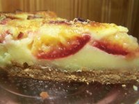 Na zapieczonym cieście kruchym układało się połówki jabłek wypełnione jakimś kwaśnym dżemem i zalewało sie to taką masą śmietanową.